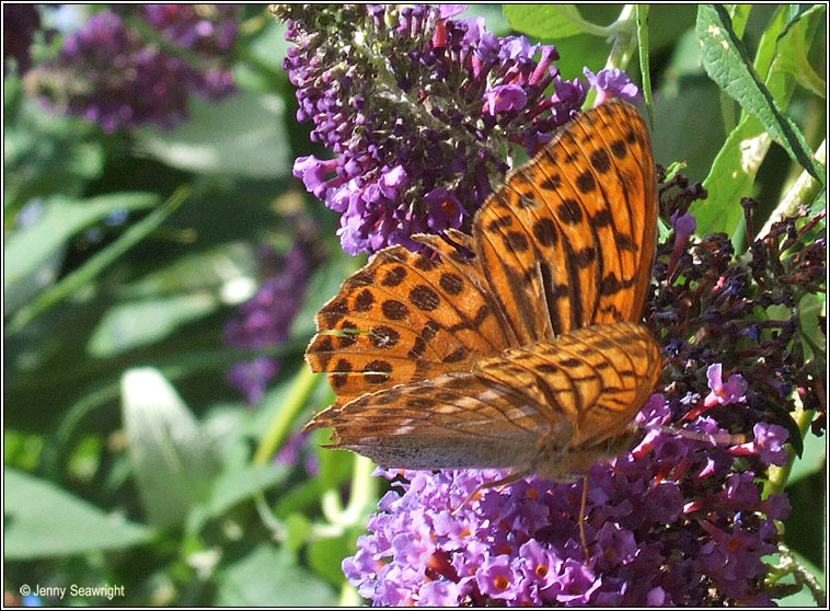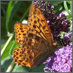 Argynnis paphae Scattered distribution, most frequent in south of Ireland Wingspan: 70-75mm Flight time: Mid June-mid September Habitat: Wooded hedgerows and woodlands Larval food plant: Common Dog-violet |