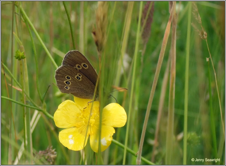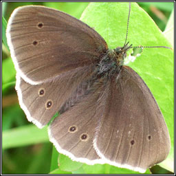 Aphantopus hyperantus Widespread, common Wingspan: 48-52mm Flight time: Mid June-mid August, single brood Habitat: Damp woods and meadows, hedgerows, river banks Larval food plants: Coarse grasses, Cock's-foot, Tufted Hair-grass, False Brome, Tor-grass |