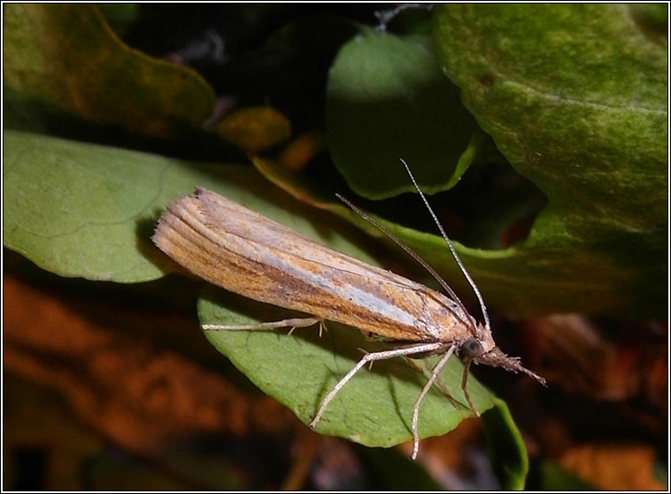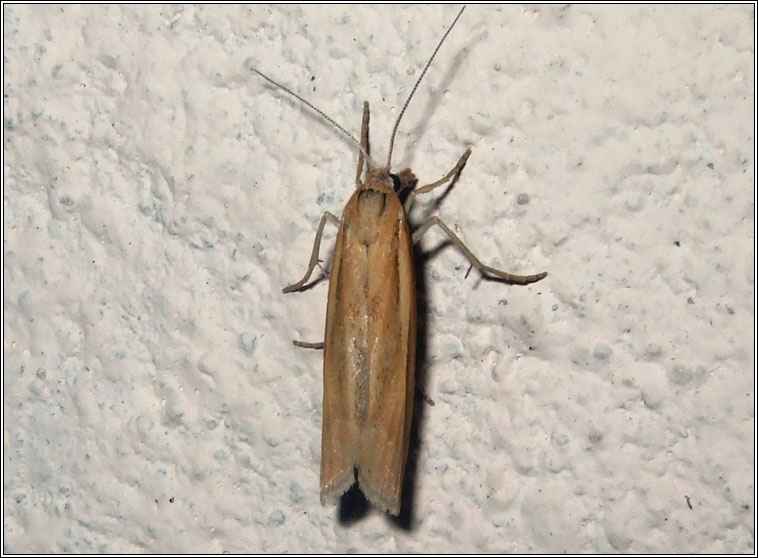 Widespread, common Wingspan: c.27mm Flight time: June-September Habitat: Can be abundant in areas with tall grasses Food plant: Grasses, larvae in silken gallery among base of stems |