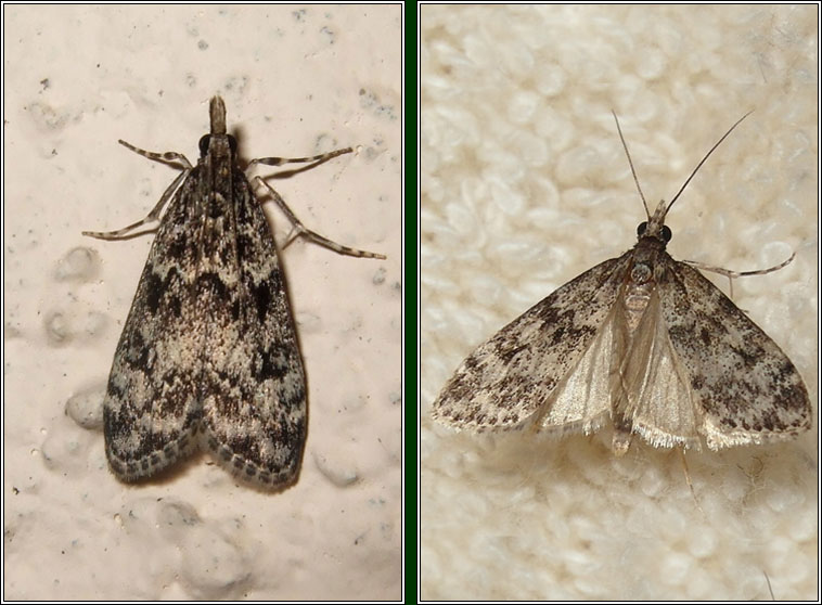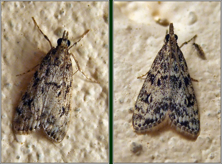 Widespread, common Wingspan: 18-22mm Flight time: July-September Habitat: Moors and woodland Food plant: Mosses Similar: Dipleurina lacustrata, E. mercurella, Scoparia ambigualis |