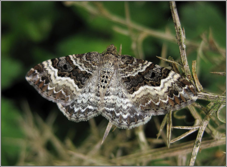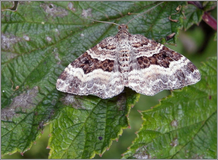 Epirrhoe alternata Widespread, common Wingspan: 20-25mm Flight time: Two generations, April-September Occurs in most habitats, including hedgerows, grasslands Larval food plants: Cleavers, Bedstraws (Galium ssp.) Similar: Sharp-angled Carpet |
