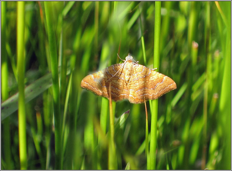 Camptogramma bilineata Locally common Wingspan: 20-25mm. Colour varies from yellow to dark brown. Flight time: May-September Prefers damp habitats Larvae feed on herbaceous plants including Sorrel, Dock, Cleavers, Bedstraws |