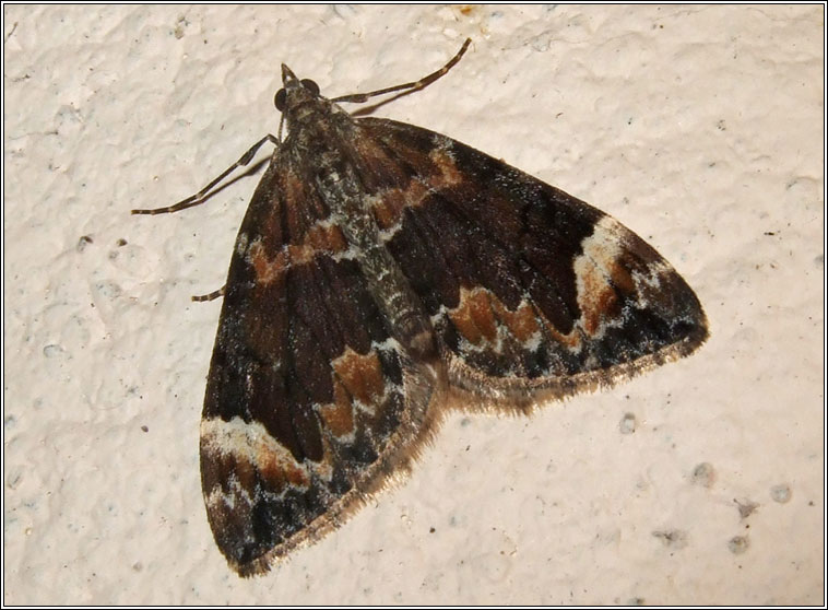 Chloroclysta citrata Widespread Wingspan: 25-30mm. Variable Flight time: July-September Habitat: Woodland, heaths, moors, gardens, hedges Larval food plants include Sallows, Birch, Heather and Bilberry Very similar: Common Marbled Carpet |