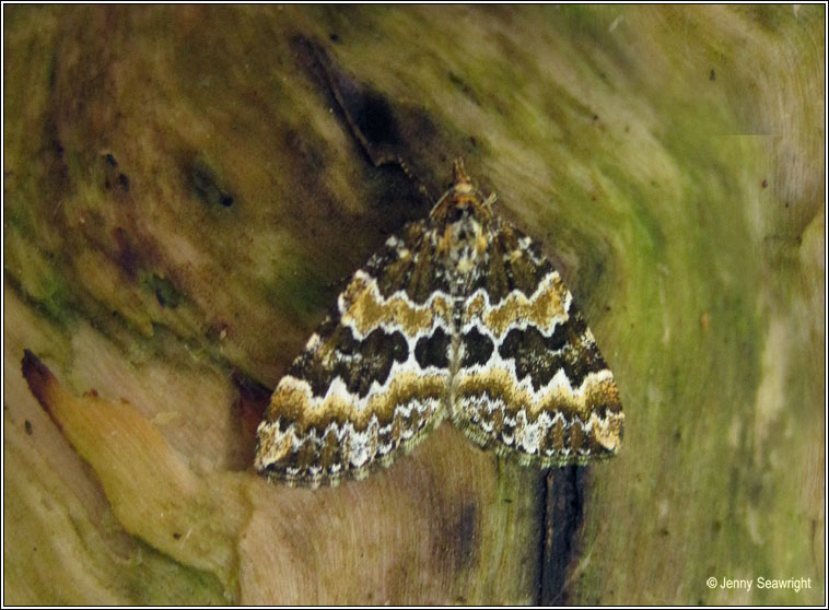 Electrophaes corylata Wingspan: 22-30mm Flight time: May-July Habitat: Woods, hedgerows, scrubby areas Larvae feed on the leaves of deciduous trees, including Hawthorn, Blackthorn, Birch and Oak Similar: Water Carpet |