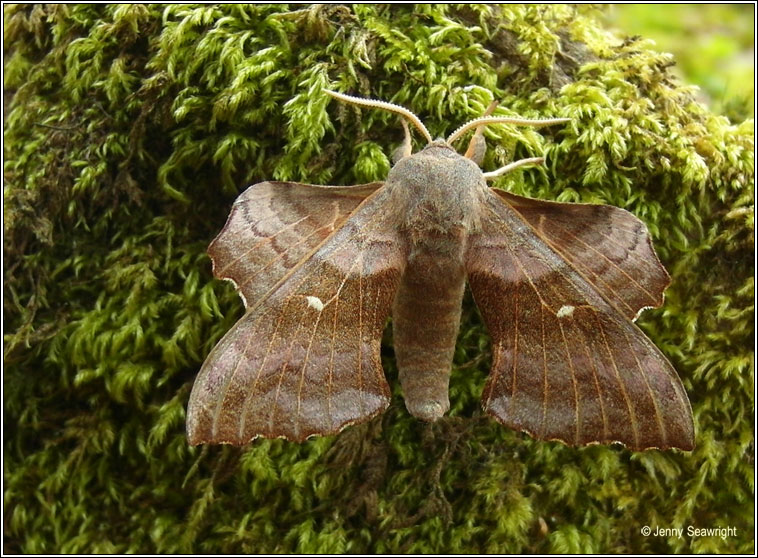 Laothoe populi Widespread, common Wingspan: 65-90mm. Adults do not feed Flight time: May-August Habitat: Found where larval foodplants occur Larvae feed on poplars, sallows and willows. Similar: Eyed Hawk-moth |