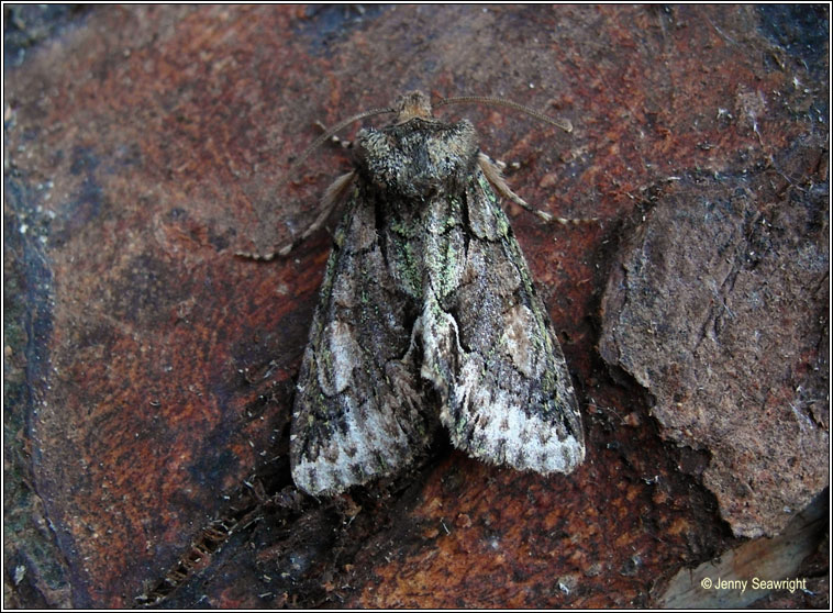 Family: Noctuidae Sub-family: Cuculliinae 2245 * Green-brindled Crescent * Allophyes oxyacanthae Widespread, locally common Wingspan: 35-45mm Flight time: September-November Habitat: Hedges, woodlands, gardens Larval food plants: Leaves of deciduous trees and shubs; Blackthorn, Hawthorn, Crab-apple, Rowan, Plum and Dog-rose |