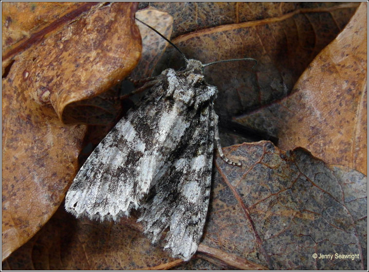 Dryobotodes eremita Scarce Wingspan: 32-39mm Flight time: September-October Habitat: Broadleaved woodland, parks, gardens Larvae feed on the buds and leaves of Oak |