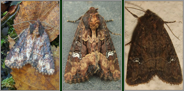 Family: Noctuidae Sub-family: Amphipyrinae 2343x * Common Rustic agg. * Mesapamea secalis agg. As Common Rustic (Mesapamea secalis)and Lesser Common Rustic (M. didyma) are very variable, nearly identical and require genitalia examination for certain identification they are often recorded and mapped as Common Rustic agg.Widespread, common Wingspan: 27-30mm. Flight time: July-September Found in grassland habitats, the larvae feed inside grass stems Similar: The Crescent |