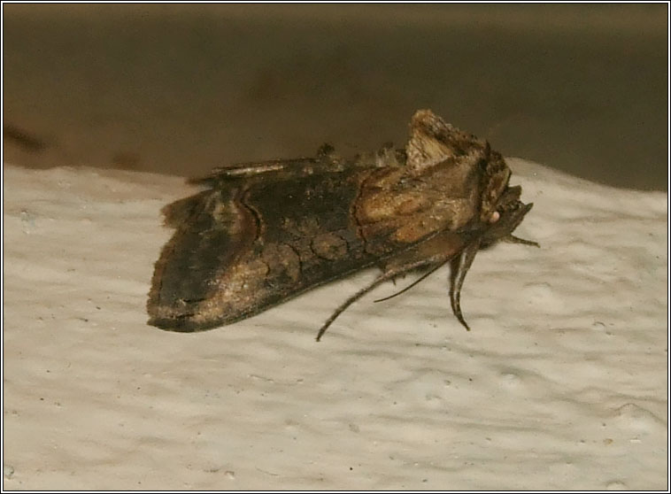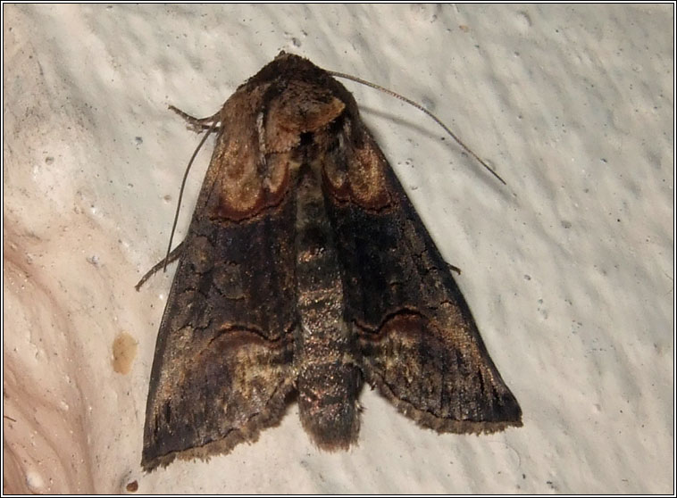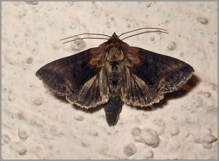 Abrostola triplasia Widespread, common Wingspan: 28-32mm Flight time: May-August Habitat: Hedgerows, cliffs, marshy ground, gardens Larval food plants: Nettles, Hops Similar: The Spectacle |