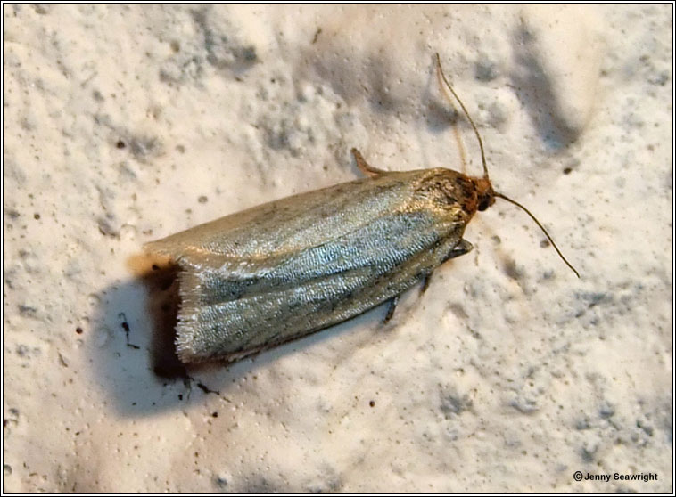 Aphelia paleana Widespread Wingspan: 18-22mm Flight time: May-August, most active at night Habitat: Waste ground, damp rough ground Food plant: Herbaceous plants, occasionally leaves of deciduous trees Pupae: Pod is sown from a single leaf on larger leaved plants |